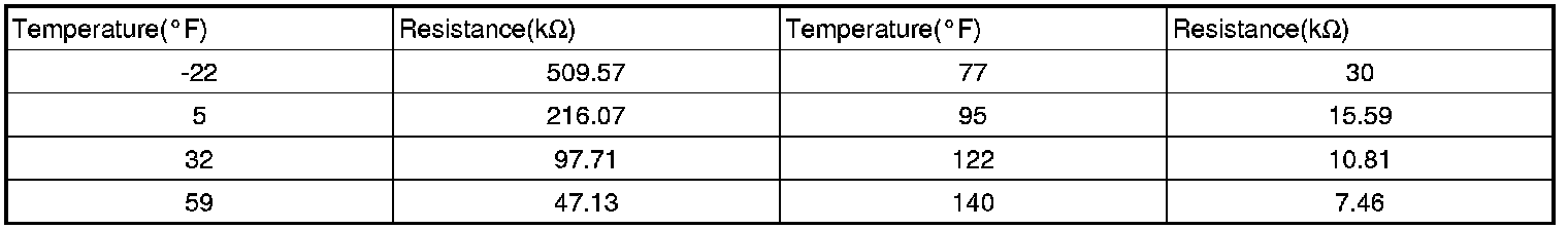 ** Resistance value of water temp sensor as a function of temperature.