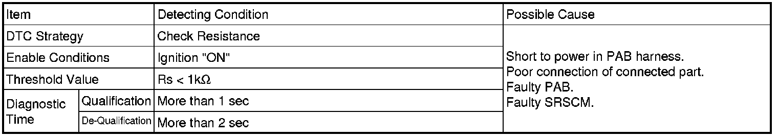The SRSCM sets DTC B1355 if there is a short to power in PAB harness.