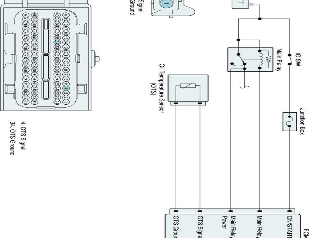 The fluid of the CVVT is the engine oil and its density changes according to the engine oil temperature. At this time the Oil Temperature Sensor (OTS) helps compensation against the temperature differences. The Oil Temperature Sensor measures the engine oil temperature before the engine oil comes into the Oil-flow Control Valve (OCV). According to the measured temperature, the Engine Control Module (PCM) compensates the oil-flow control valve operation time.