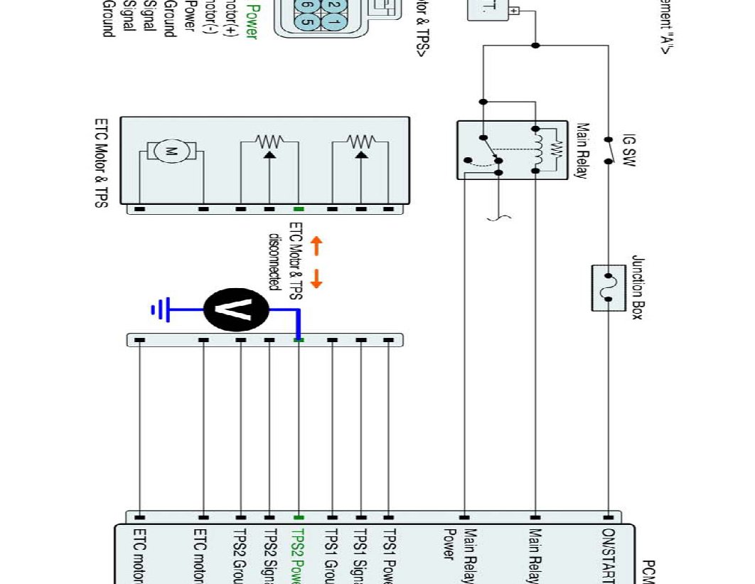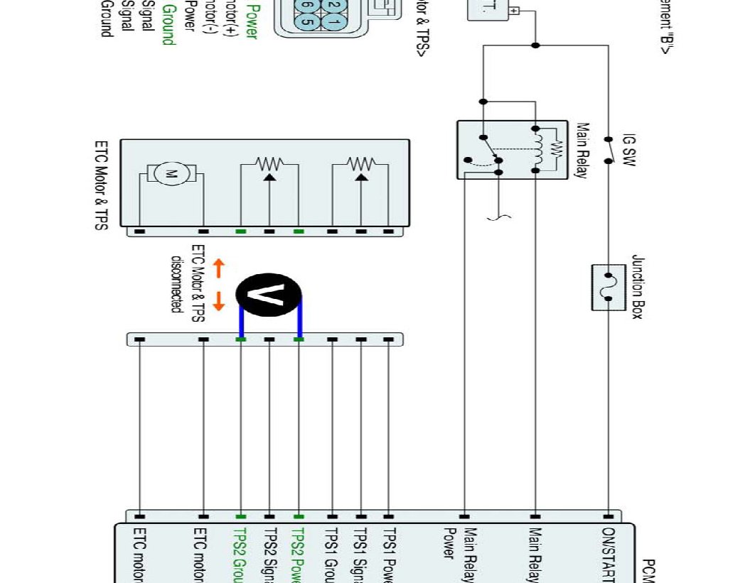3. Measure voltage between TPS 2 power terminal of ETC Motor & TPS harness connector and chassis ground. (Measurement "A")