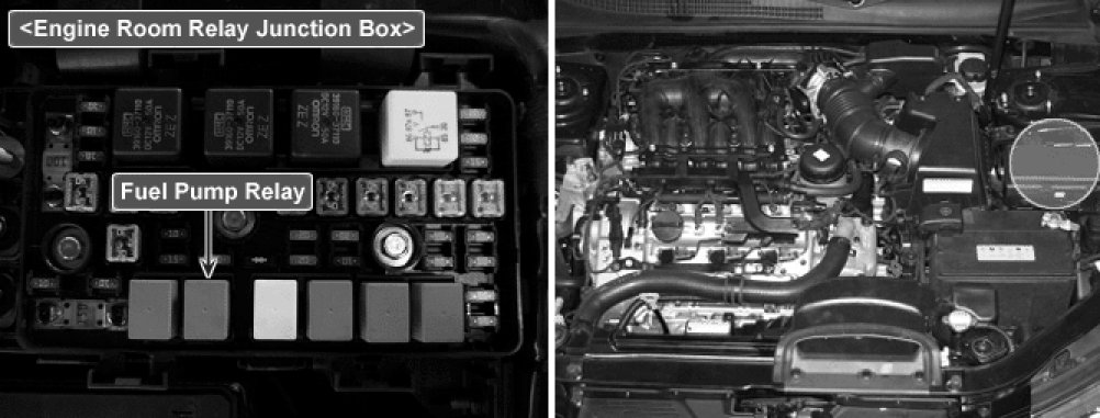 Checking fuel pump relay circuit continuously under detecting condition, if open or short in the circuit is detected, PCM sets P0230.In addition, Take note that open circuit in Main Relay may cause this P0230 code.