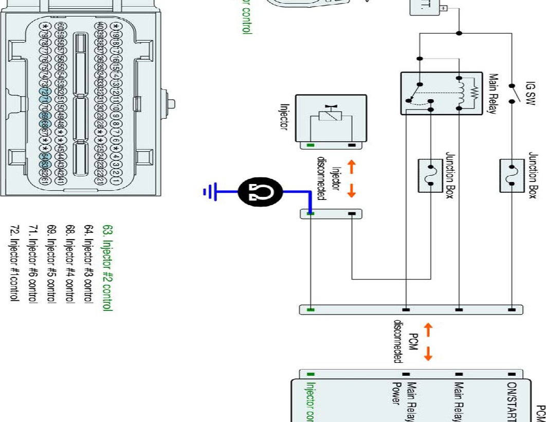 1. IG "OFF" and disconnect injector connector and PCM connector.