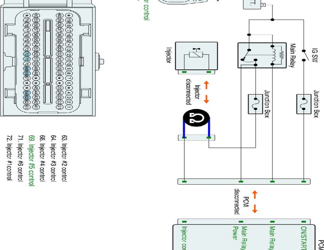 1. IG "OFF" and disconnect injector connector and PCM connector.