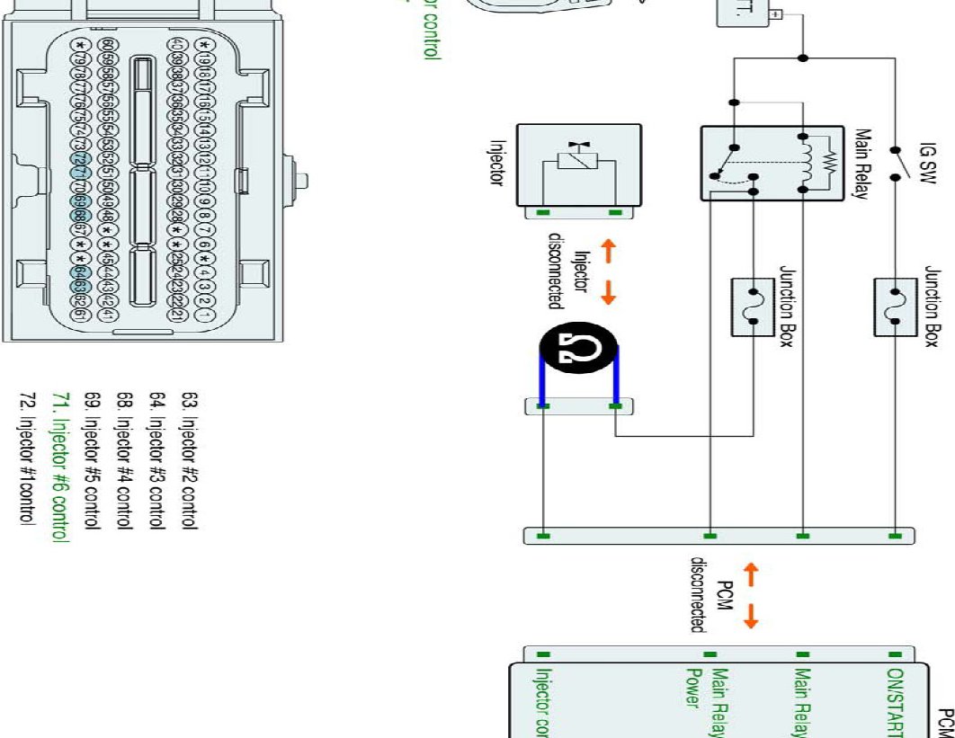 1. IG "OFF" and disconnect injector connector and PCM connector.