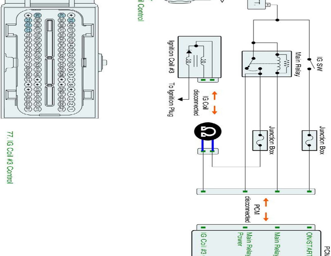 1. IG "OFF" and disconnect Ignition Coil #3 connector and PCM connector.