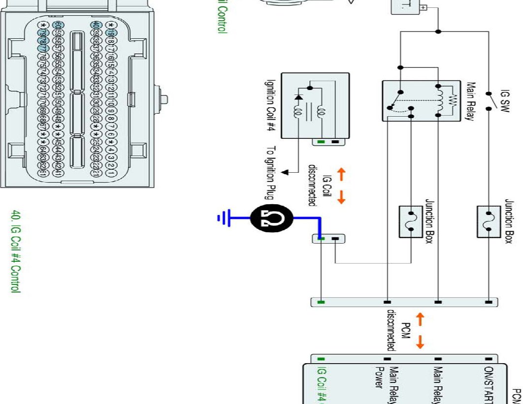 1. IG "OFF" and disconnect Ignition Coil #4 connector and PCM connector.