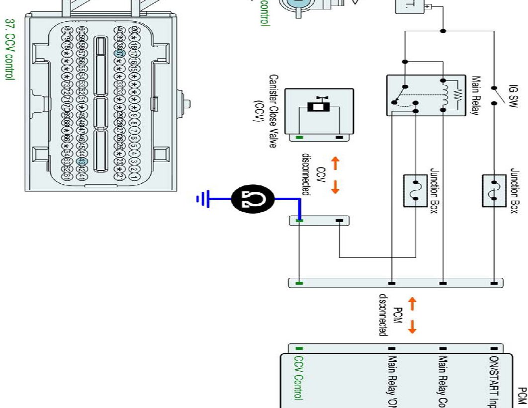 1. IG "OFF" and disconnect CCV connector and PCM connector.