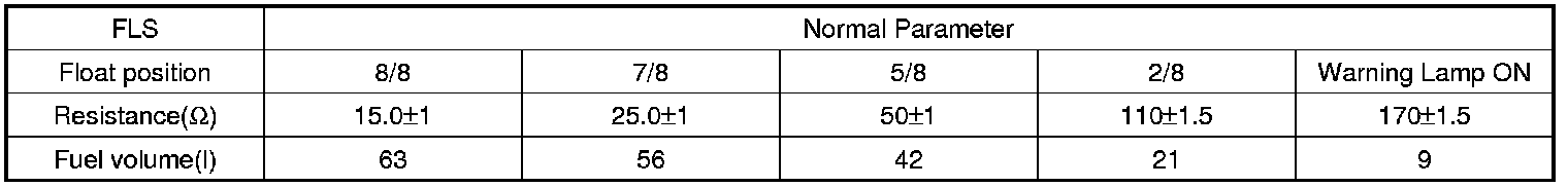 The Fuel Level Sensor (FLS) measures the fuel level in fuel tank and its information is used to supply the PCM with information regarding the monitoring condition of the EVAP canister purge system for leak detection. If the fuel level sensor is monitored for high or low stuck or difference between voltage of fuel level sensor and voltage deviation of fuel level sensor is exceeds limited value while driving, this is interpreted by the PCM as a fault.