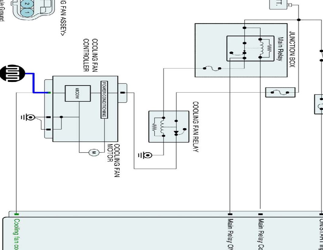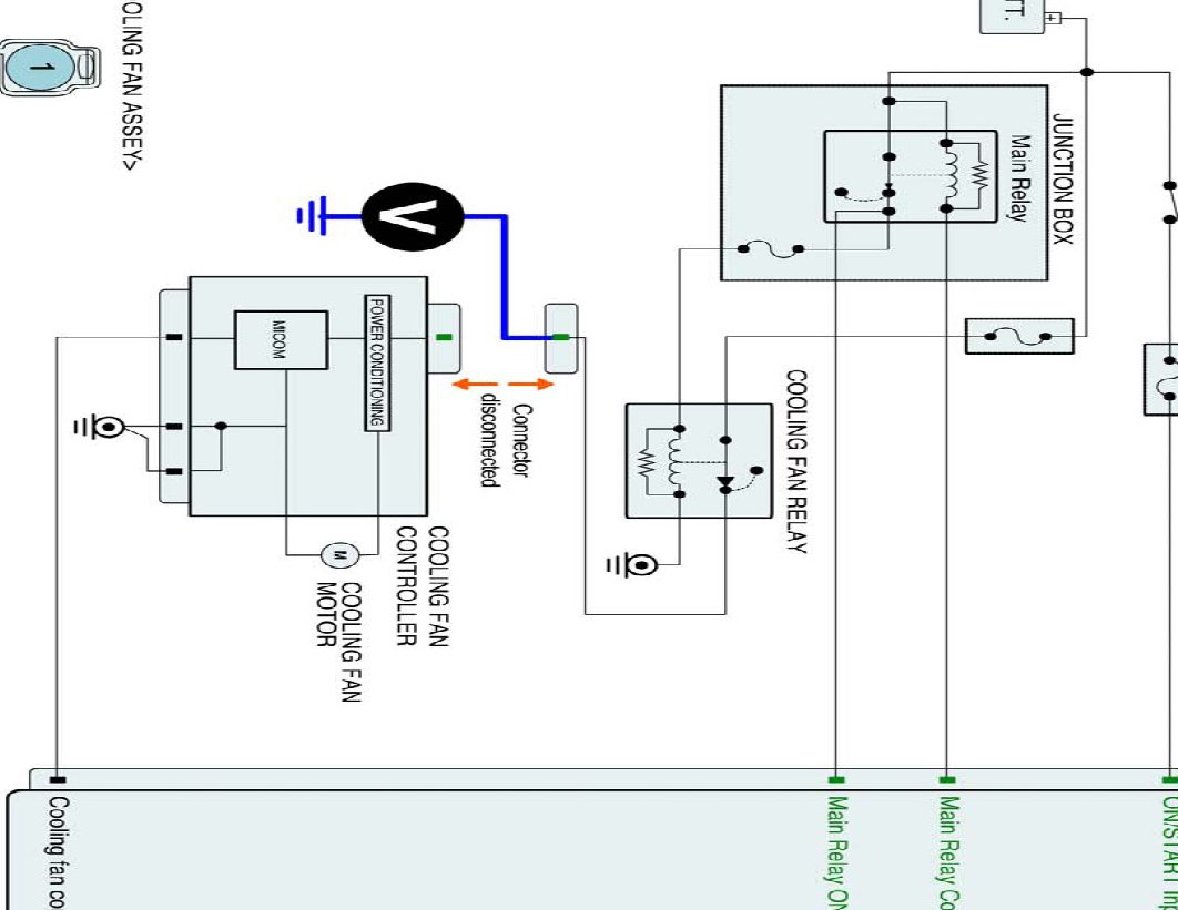 3) Check if the line between cooling fan relay and Cooling fan module is open.