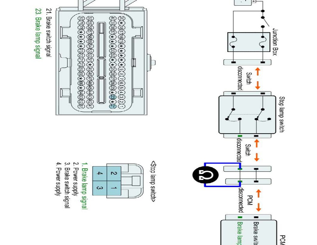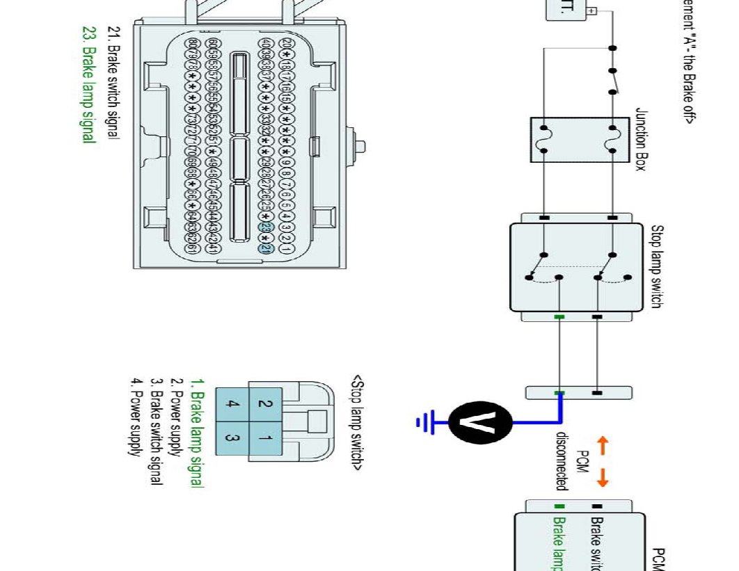4. Brake "OFF" : Measure the voltage between brake lamp signal terminal of PCM harness connector and chassis ground. (Measurement "A")