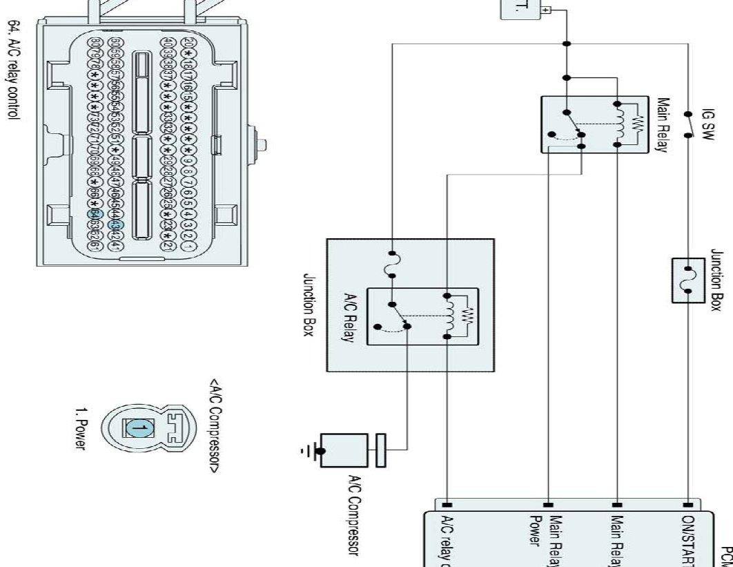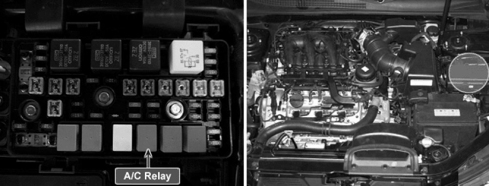 The A/C clutch relay is activated if the A/C switch is operated while the blower is running and system operation is enabled by the PCM. When A/C is requested, the Engine Control Module (PCM) provides a ground path to the A/C clutch relay control circuit. When the relay circuit is grounded, the A/C clutch relay is energized. The PCM delays grounding the relay circuit for a short time, so the PCM can adjust the engine idle speed for the additional load. The PM will temporarily de-energized the A/C clutch relay for one or more of the following conditions: