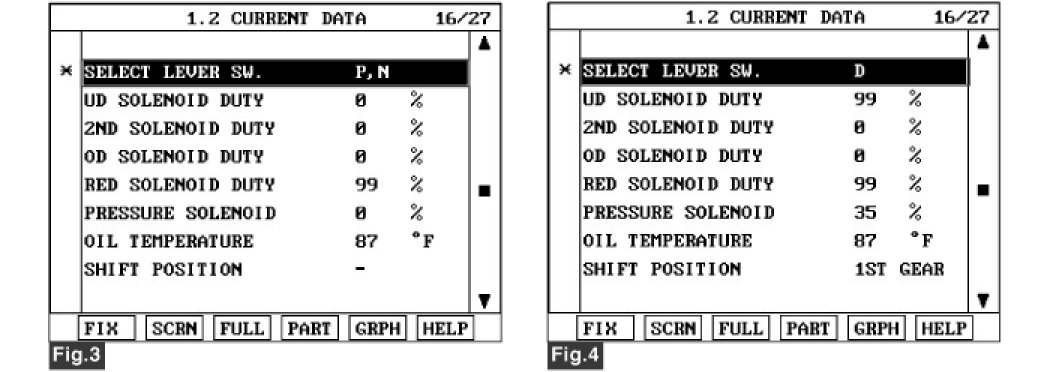 3. Monitor the "TRANSAXLE RANGE SWITCH" parameter on the scantool