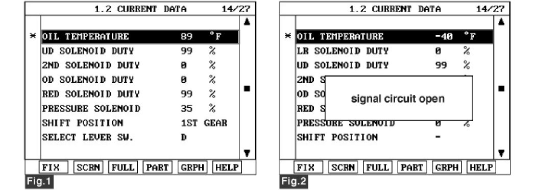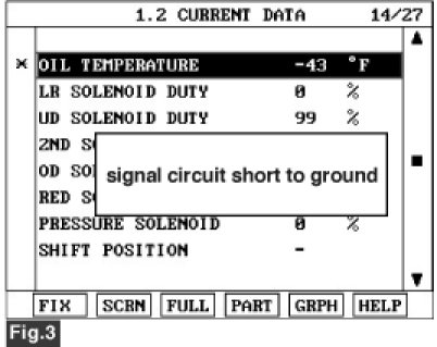 3. Monitor the "TRANSAXLE FLUID TEMPERATURE SENSOR" parameter on the scantool