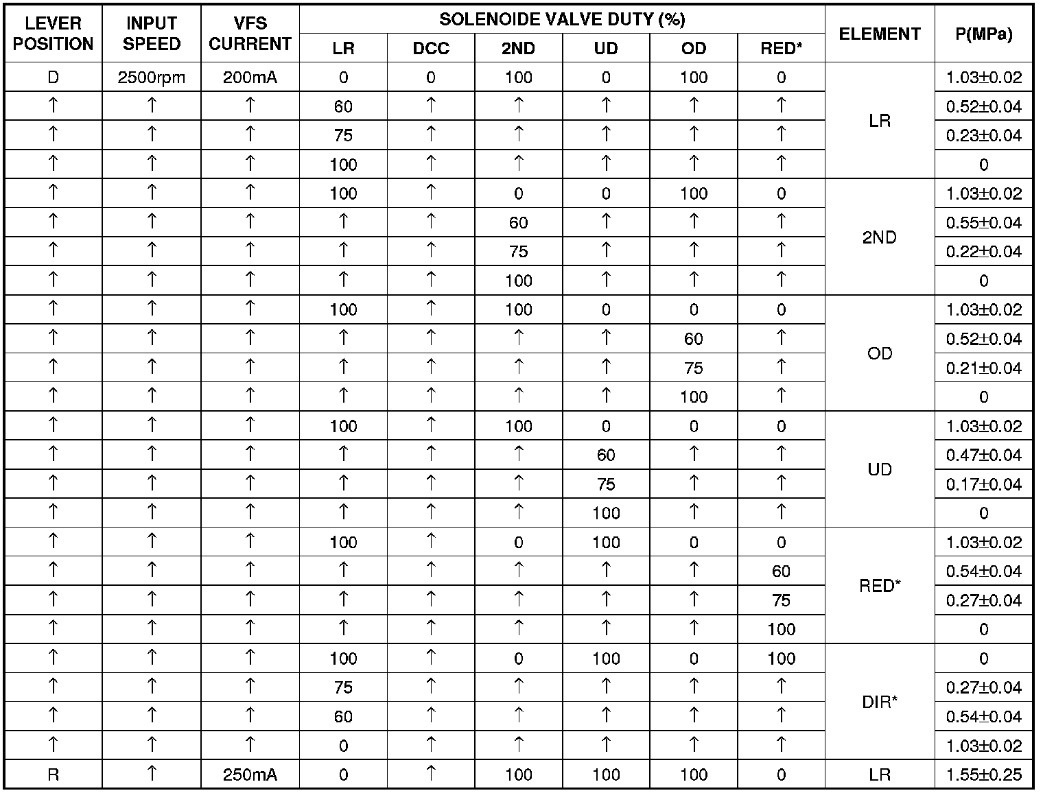 Specification :Refer to Standard Oil Pressure Table as below