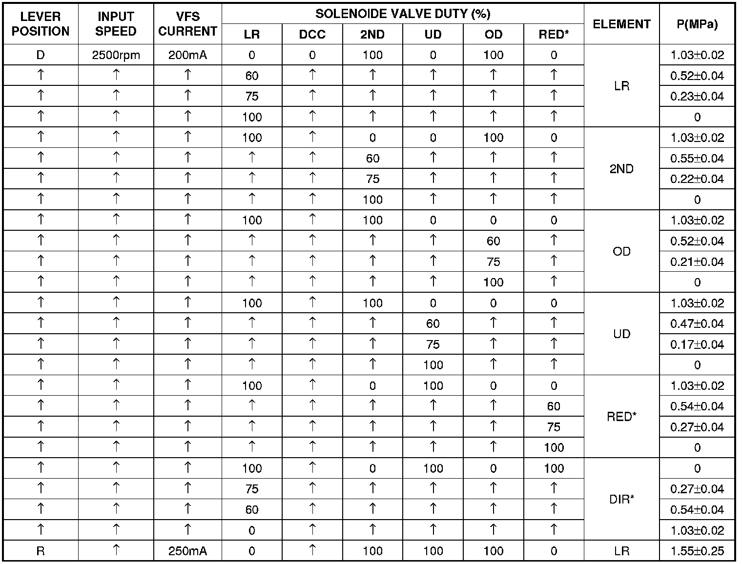 Specification :Refer to Standard Oil Pressure Table as below