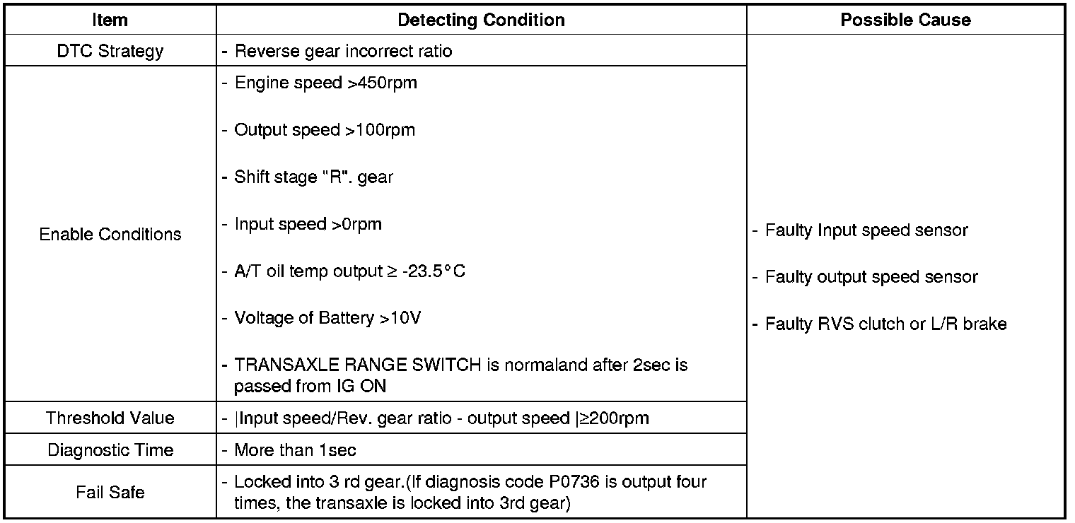 Automatic Transaxle - P0736 Reverse Incorrect Ratio - General Information