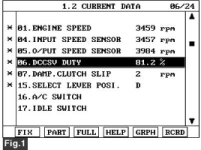 4. Monitor the "TORQUE CONVERTER (DAMPER) CLUTCH" parameter on the scantool