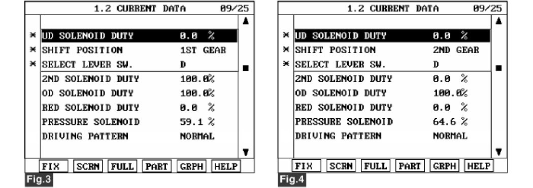 5. Does "UD SOLENOID DUTY " follow the referance data?