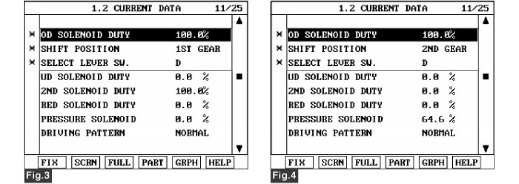 5. Does "OD SOLENOID DUTY " follow the referance data?