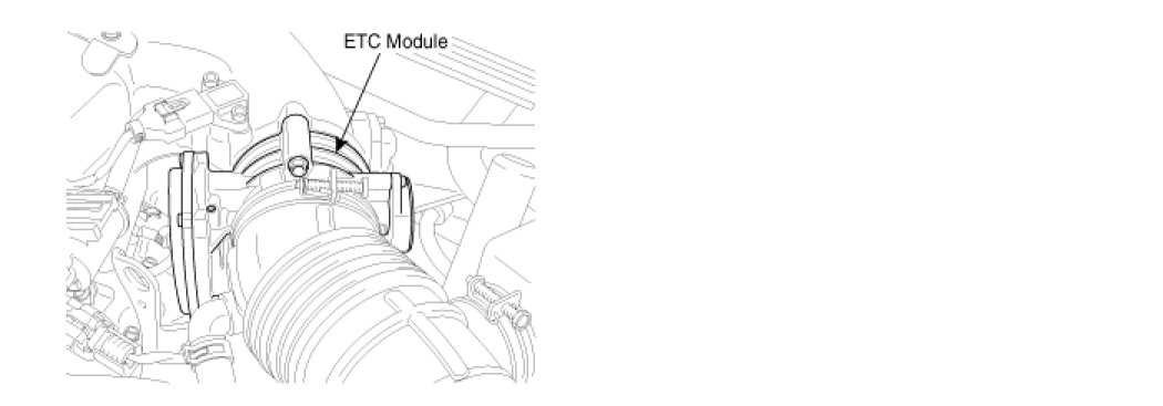 The Electronic Throttle Control (ETC) system is made of the components throttle body, Throttle Position Sensor (TPS)1&2 and Accelerator Position Sensor (APS) 1&2. TPS 1&2 are sharing the same source voltage and ground.The throttle valve opening is control by throttle motor which is controlled by Engine Control Module (PCM).The opposite position indicator shows inverted signal characteristics.TPS 1 output voltage increases smoothly in proportion with the throttle valve opening angle after starting. TPS 2 output voltage decreases in inverse proportion with the throttle valve opening angle after starting. TPS provides feedback to the PCM to control the throttle motor in order to control the throttle valve opening angle properly in response to the driving condition.