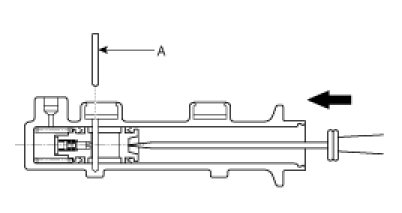 6. Remove the pin with the secondary piston pushed completely using a screwdriver. Remove the secondary piston assembly.
