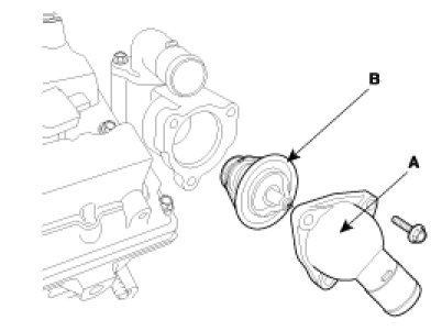 2. Remove water inlet(A) and thermostat(B).