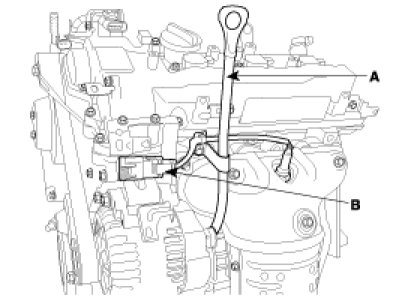 5. Disconnect LH front oxygen sensor connector (B) from bracket.
