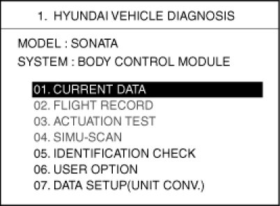 2. To diagnose the BCM function, select the menu of model and body control module.