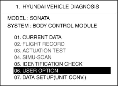 The BCM offers 3 items user option mode for a user convenience (Auto door lock, door key burglar alarm, door lock state inform horn)