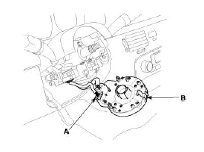 5. Remove clock spring connector(A), then remove clock spring(B).