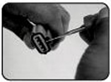 - Flat tip type: Removal of single locking male/female terminal from the connector.