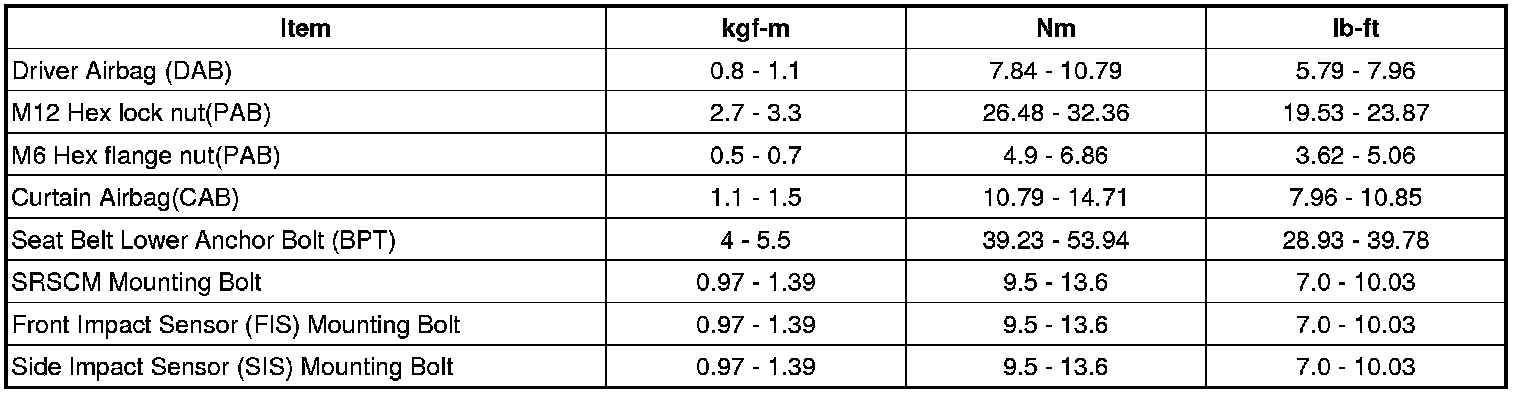 Tightening Torques