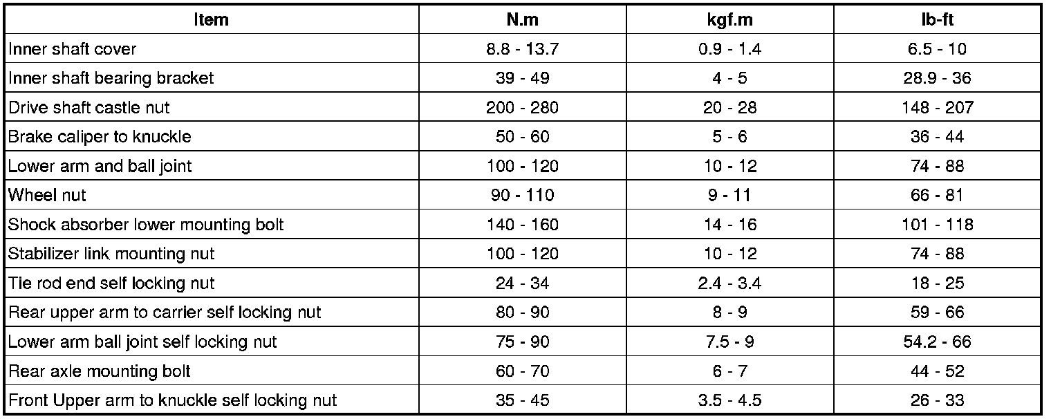 Tightening Torques