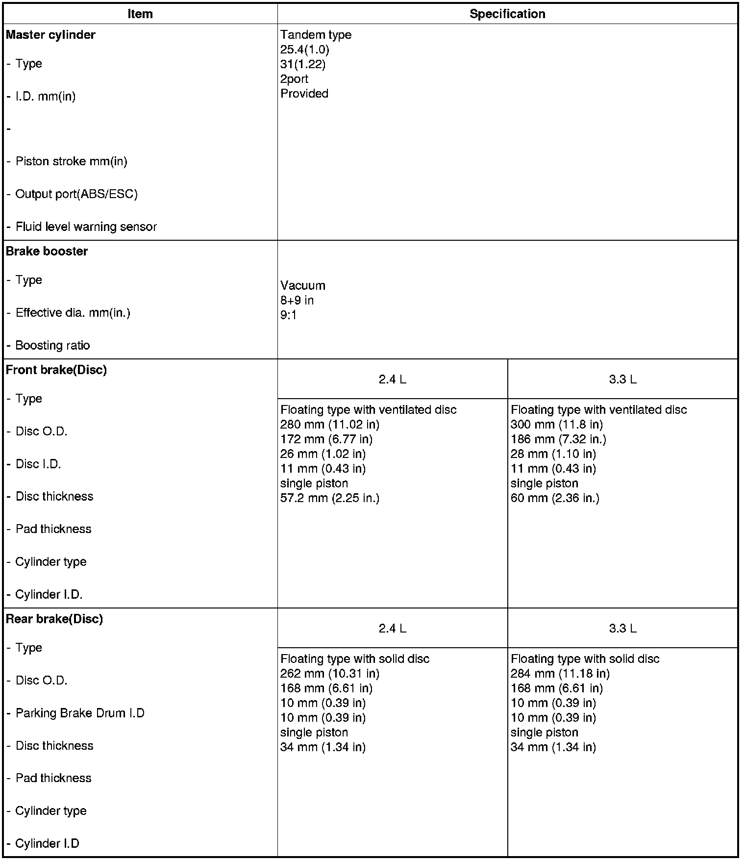 Specifications
