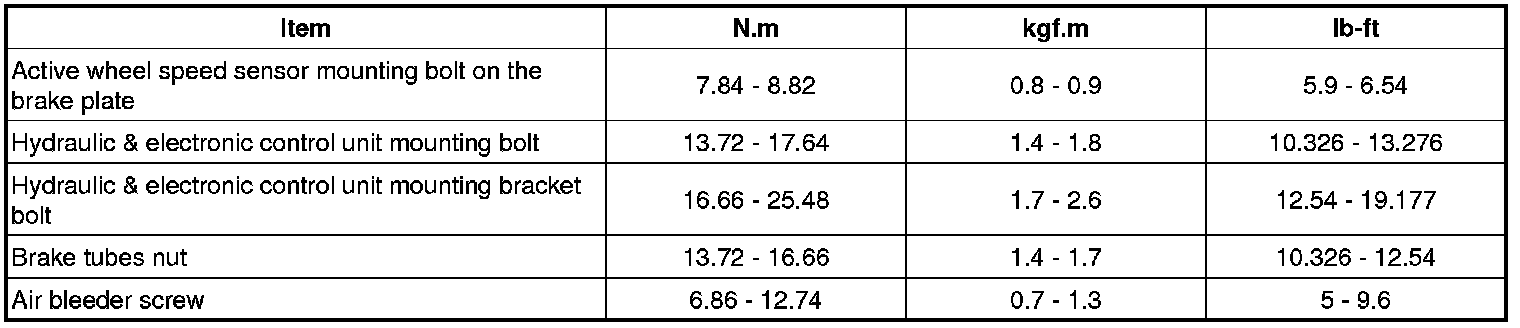 Tightening Torques (ABS)