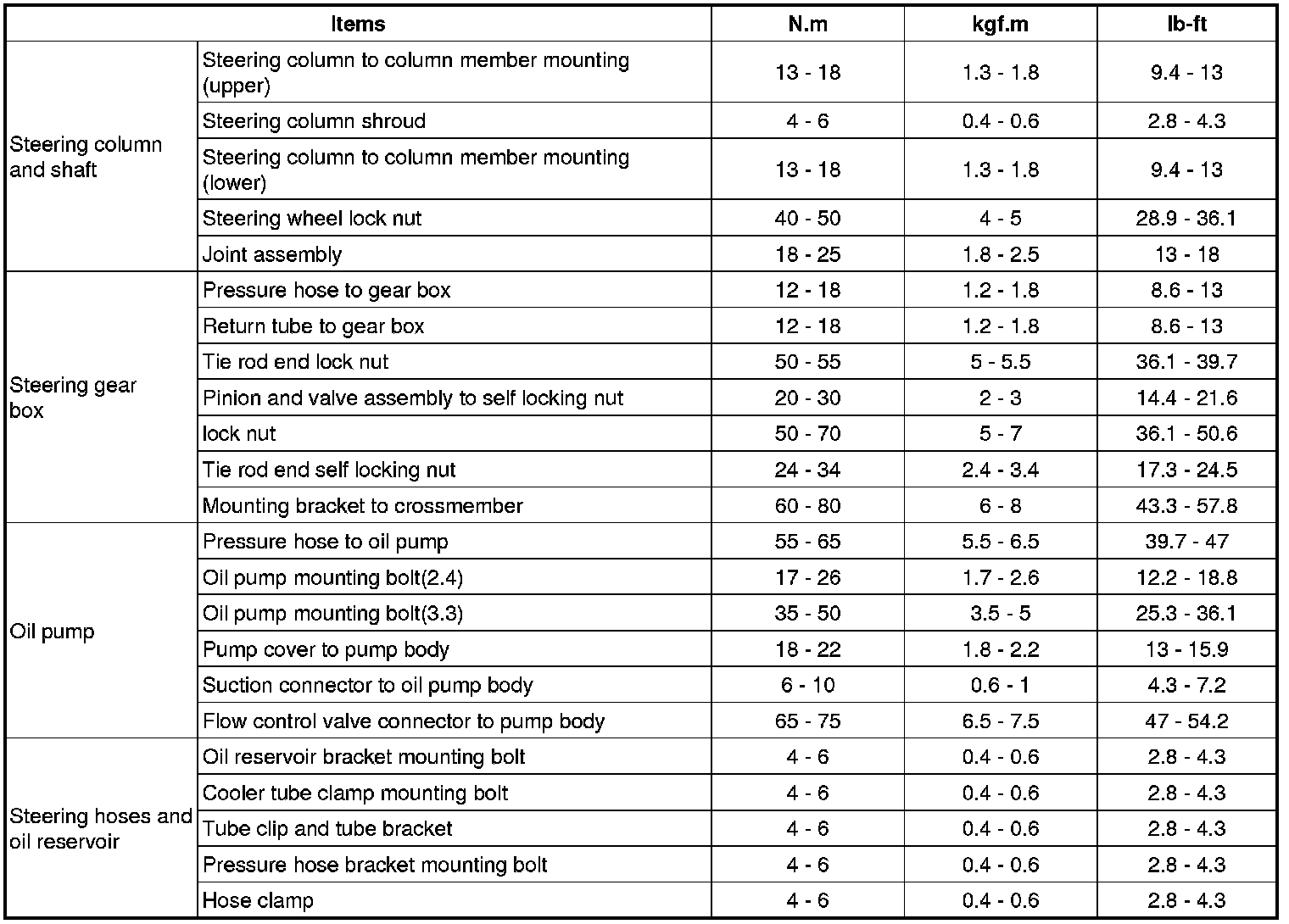 Tightening Torques
