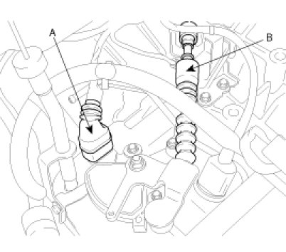 (3) Disconnect LH rear oxygen sensor connector(A) and CPS connector(B).