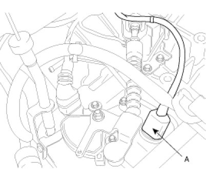9. Remove transaxle oil cooler hose(A).