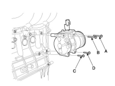 1. Make sure of the length of compressor mounting bolts, and then tighten it A->B->C->D order.