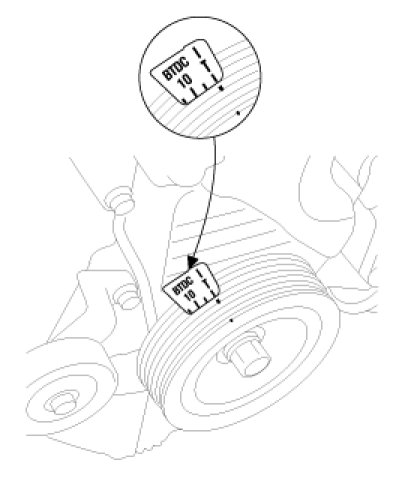 If the timing belt reused, make an arrow indicating the turning direction to make sure that the belt is reinstalled in the same direction as before.