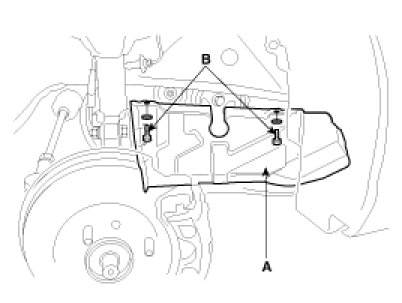 3. Remove the 2 bolts(B) and RH side cover(A).