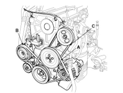 14. Install the power steering pump drive belt(C). .