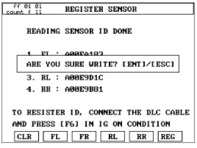 2. Read the four sensor's ids starting with sensor 1 (1 normally front left, 2 front right, 3 rear left, 4 rear right).
