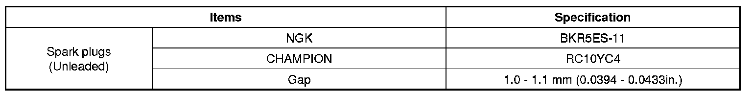 Spark Plug: Specifications