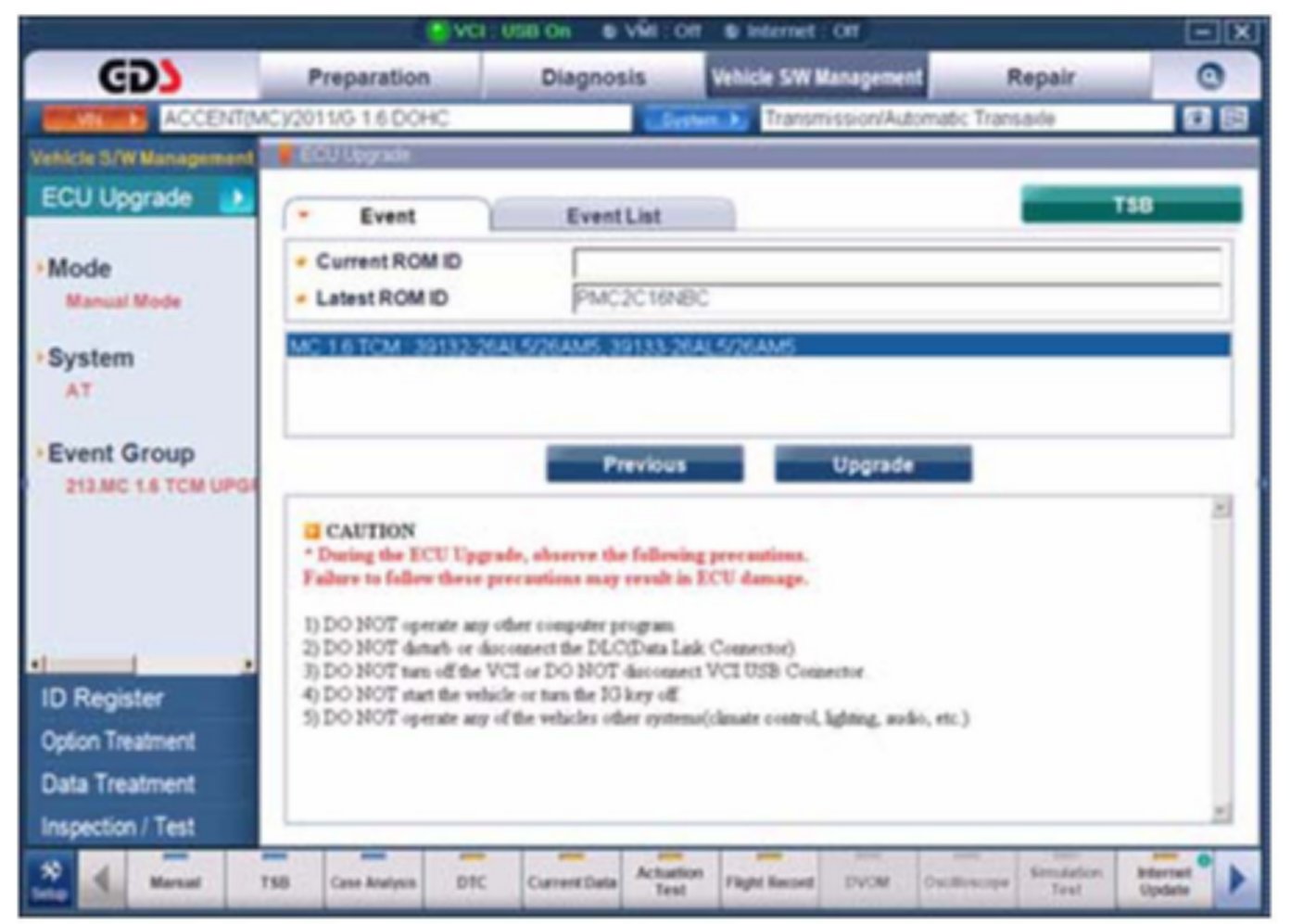1-1. AUTO MODE TCM UPDATE PROCEDURE