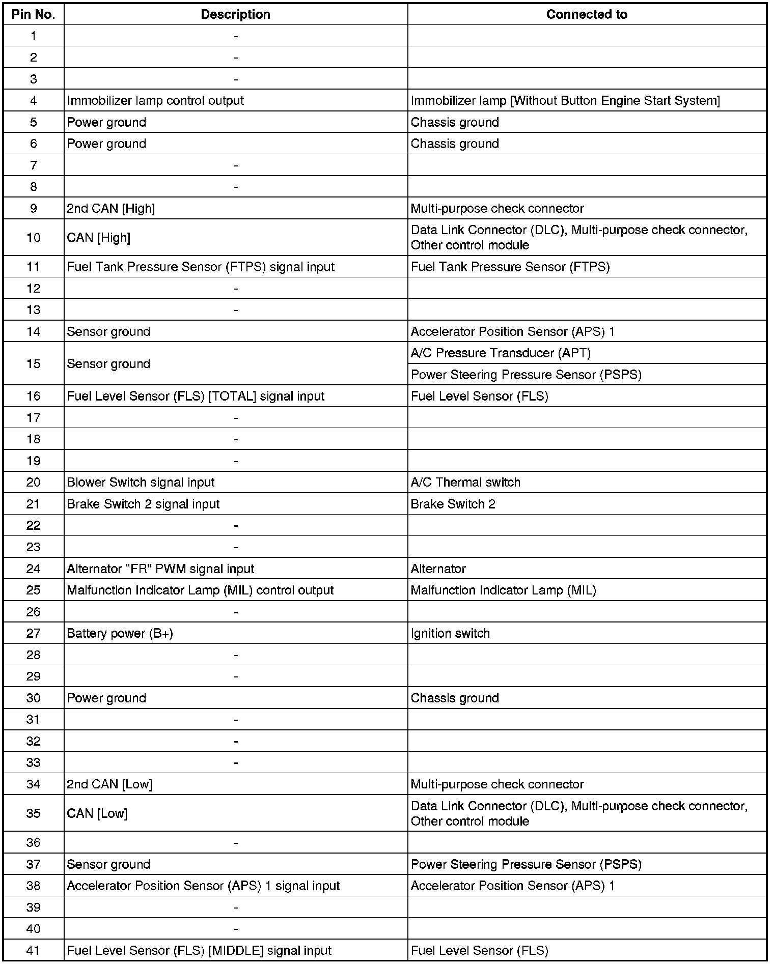 ECM Terminal And Input/Output signal