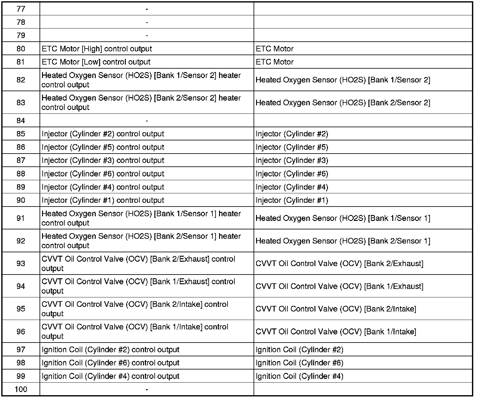 ECM Terminal Input/Output Signal