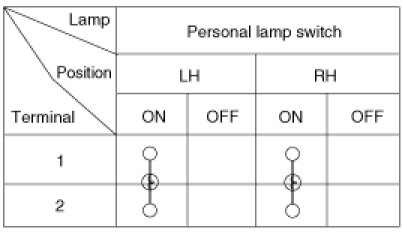 1. Inspect personal lamp switch operation.