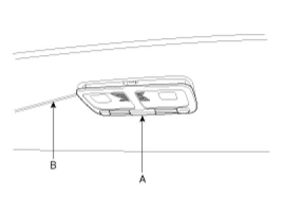 2. Remove the room lamp assembly (A) by using the scraper (B) and then disconnect the 2P connector.