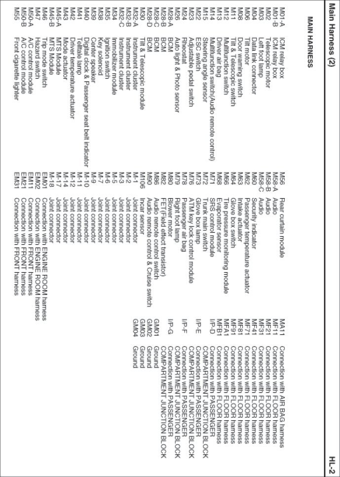 Main Harness Index: